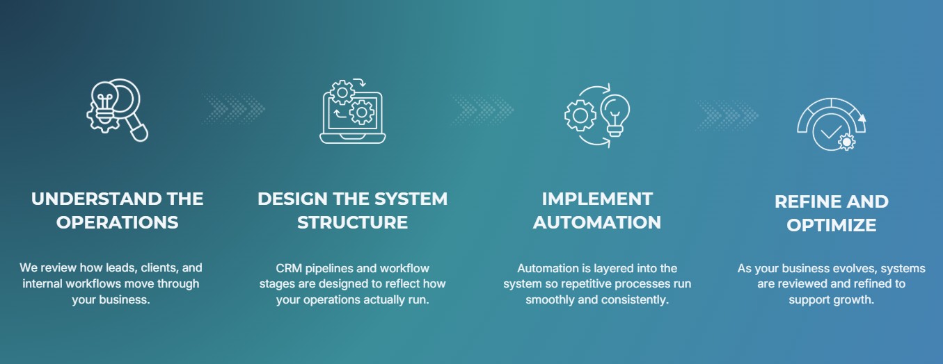 To design structured CRM and automation systems that give service-based businesses the clarity and control they need to grow.